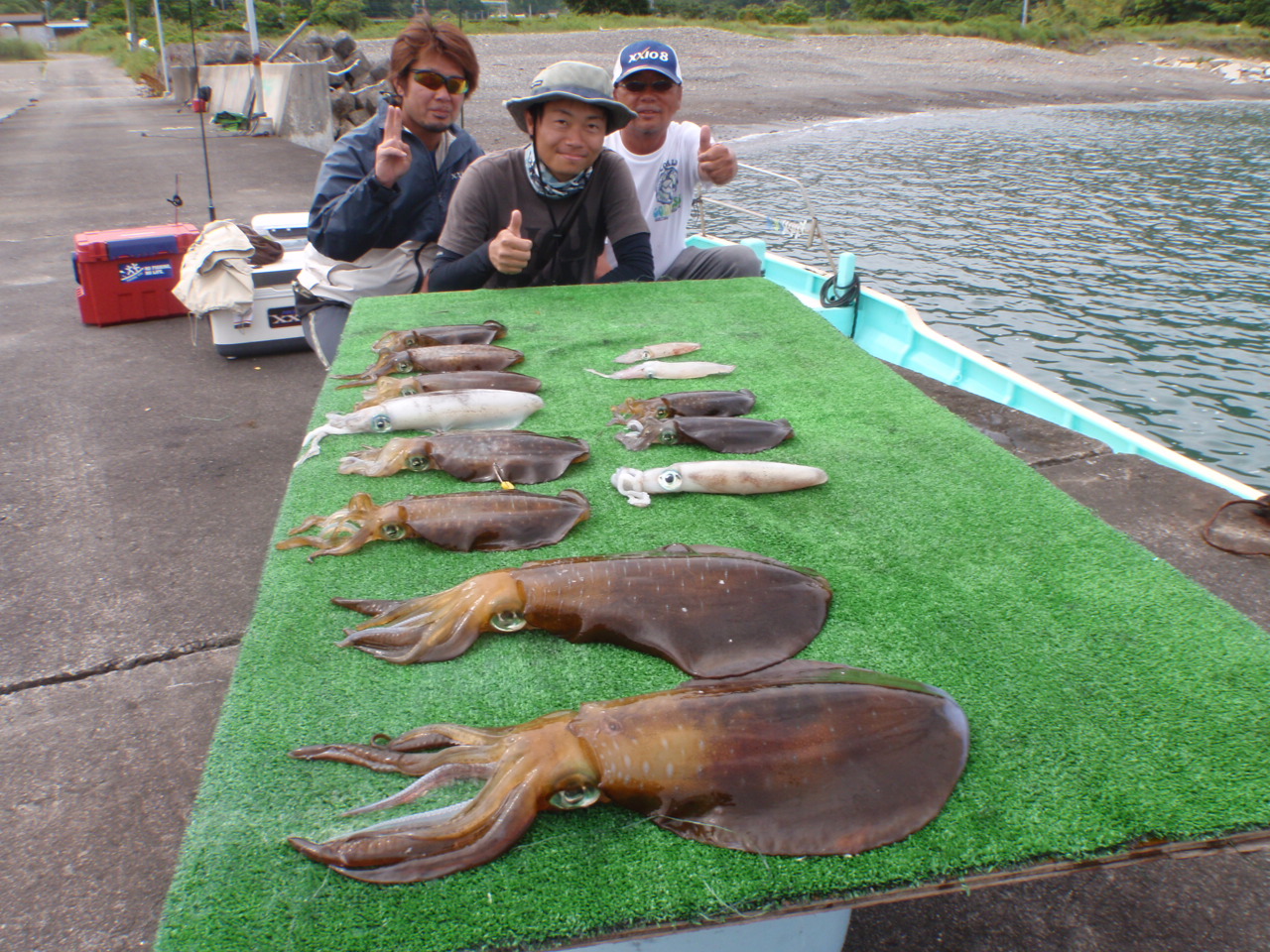 キロ以上は6杯だけですが、 これ以外もご覧のとおり、どれも良型揃いの立派なイカばかりで、 今日の午前便は キッチリ当ててきました(^_-)v