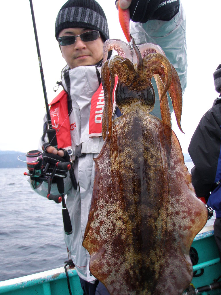鈴木君から。「揃えてもらったタックルでキロイカ3バイも釣れました。有難う御座いました♪♪」
